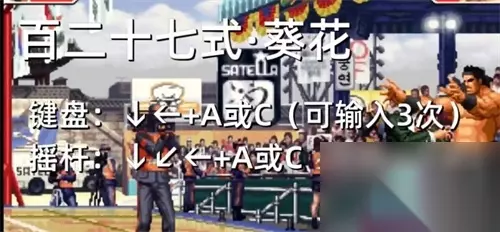 7、贰百拾贰式·琴月阴 →↘↓↙←·B或D。 8、百贰拾七式·葵花 ↓↙←·A或C(可三回连续输入)。