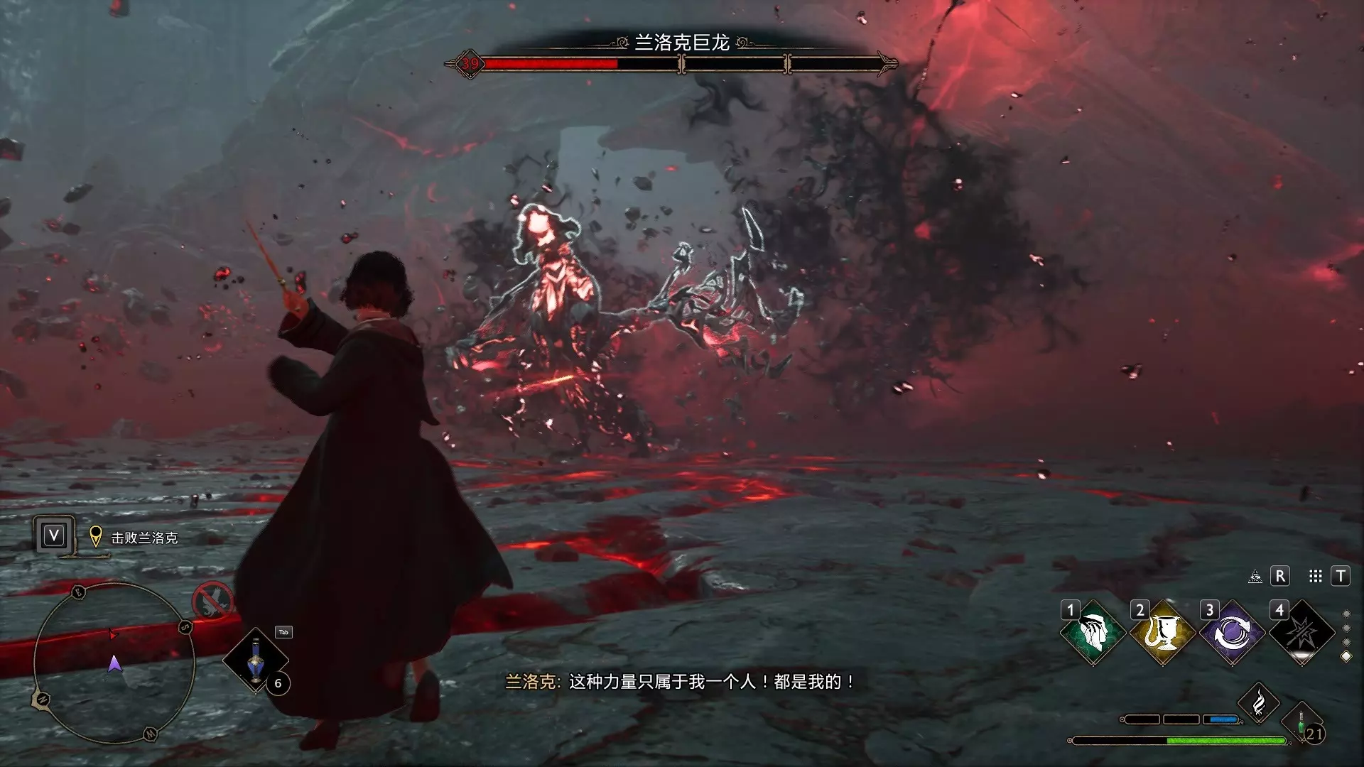 这是《霍格沃兹之遗》的游戏实况,展示了最终主线任务里与兰洛克巨龙的魔法决战,战斗场面酣畅淋漓,完成该主线后此部分剧情就将结束。