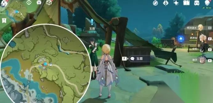 四、龙脊雪山 16.山中之物 触发地点:在下图位置与冒险家玉霞对话。