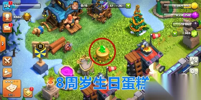 这就是小伙伴们期盼的“9周岁生日蛋糕”它和纪念雕像不同,不能收纳到仓库里面,而是通过特殊障碍物的手段出现在我们的村庄里,部落冲突一年只会有四次推出特殊障碍物的时间,分别是生日、圣诞节、万圣节和春节,所以说生日蛋糕还是比较珍贵的,它的另一个功能就是记录你抵达村庄的日期和游戏的时长。 虽然说“特殊障碍物”不受障碍物上限的制约,但是这只是存在与低本的村庄,一些高本由于基地的防御阵型很大,再加上一些树木和其他的特殊障碍物,所以村庄根本没有留下多少空白的地方,这样的阵型也会阻碍“特殊障碍物”的生长,所以有和小白类似情况的小伙伴,一定要在近期在村庄清理出足够的地方来安放“9周岁”的生日蛋糕。