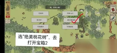 活动玩法详解 三秋酒的位置 P1标红处 探险任务路线 P2到P12 方向选择顺序(P3开始,P12结束):北→西北→西→西南→东东→东→西→东东→东→竹林深处→离开→竹间高地 探险宝箱1位置 P7标红处 探险宝箱2路线 (P12→P6→P7→P13→P14) P12开始:选择“绝美桃花树”返回P6 方向选择顺序:绝美桃花村→西南→东东→东东东 活动难点解析 线索繁多容易混淆 路线复杂需要耐心 宝箱位置隐蔽难找 任务目标明确清晰 玩法技巧需总结 活动图片参考