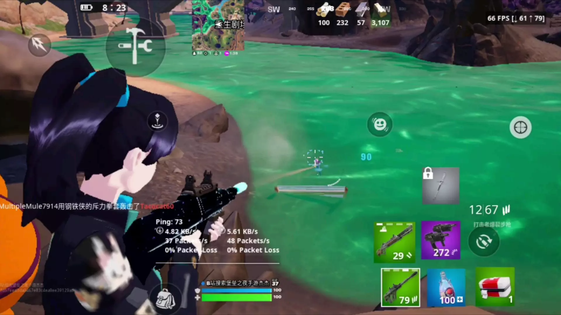 这是FPS手游《堡垒之夜》的165FPS高帧率游戏画面展示,画面呈现了玩家跳伞落地、搭建掩体、战斗等游戏过程,高帧率让游戏运行流畅,带来极致的操作体验。