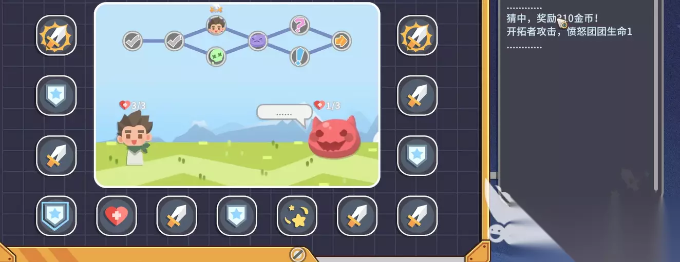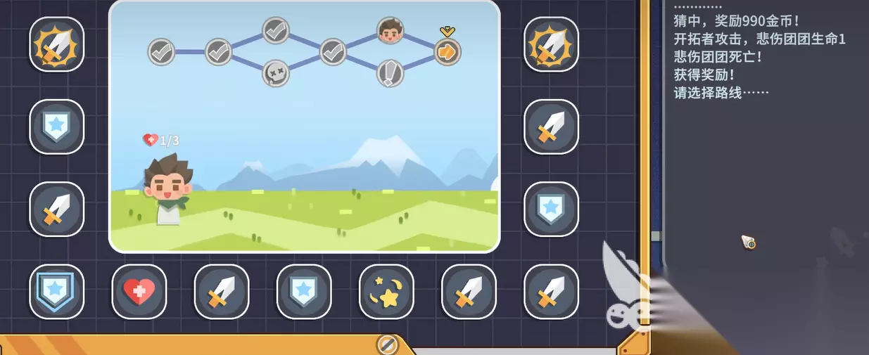 具体的位置在游戏中心地图那块,进去之后会看到一个房间,里面有台冒险机。这台机器就是我们今天要用到的核心道具了。先看看自己现在有多少金币,比如说现在是159个,接下来快速存个档,这个存档很关键。冒险机的玩法其实不复杂,当你选择线路进入战斗的时候,系统会随机从一圈行动里面选一个,你要做的就是提前预测它会选哪个。
