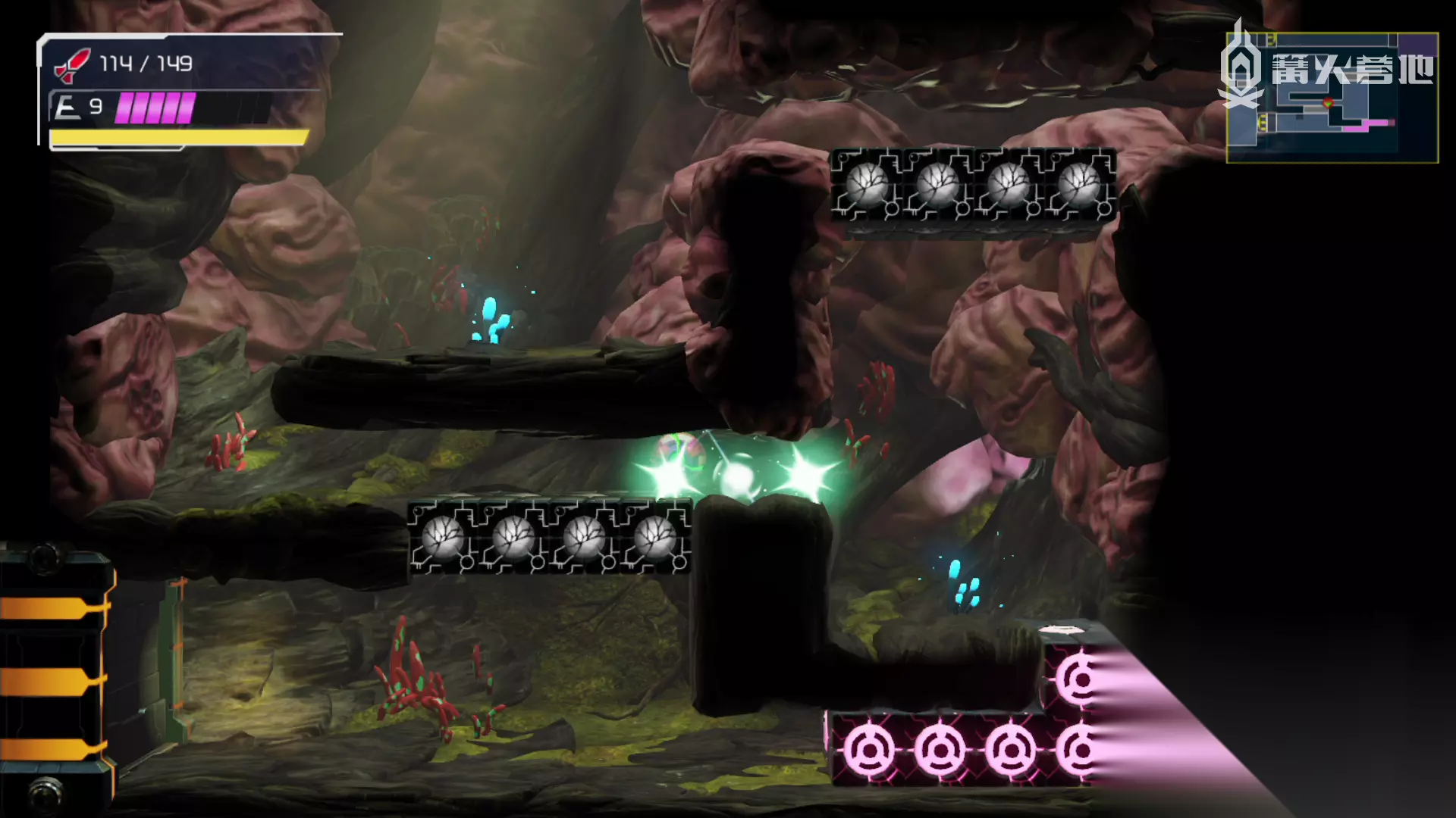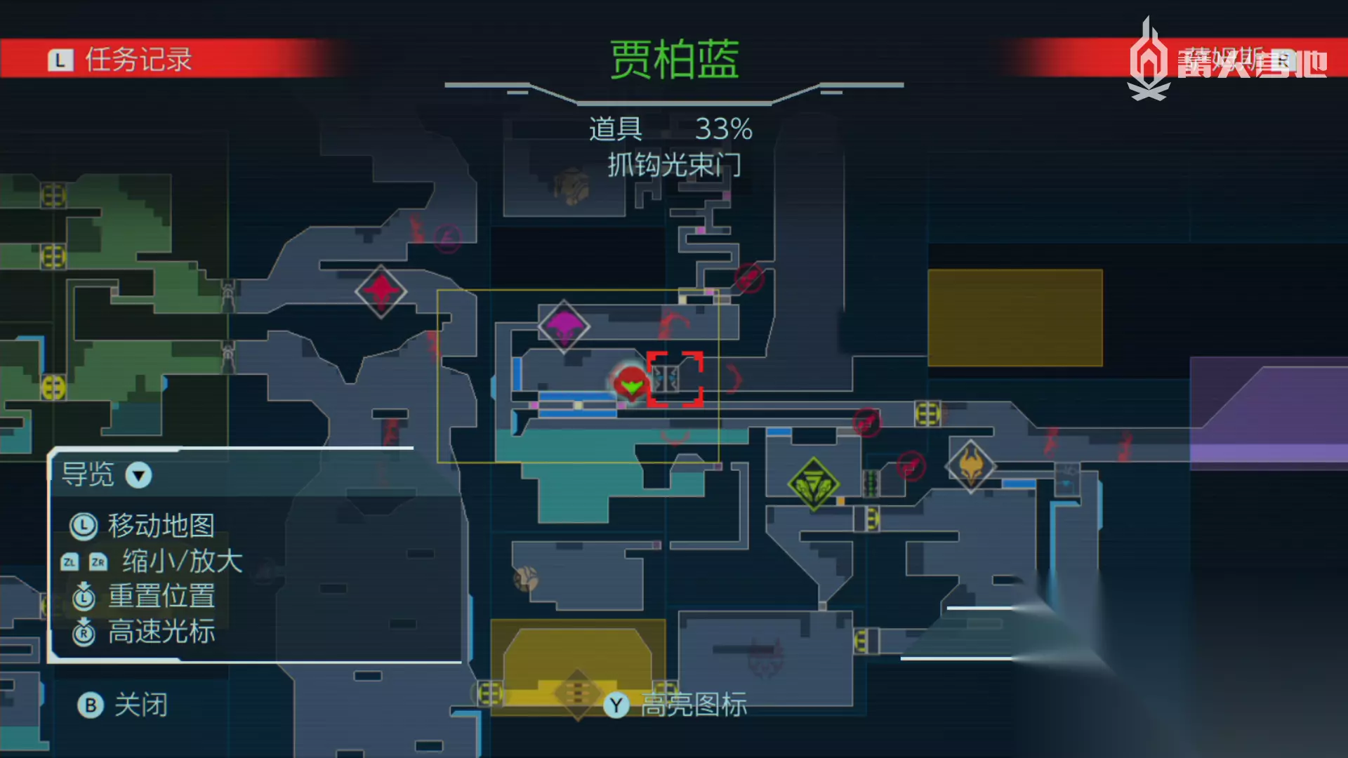 下面为玩家们带来任天堂 Switch 的密特罗德(又称银河战士系列)新作《密特罗德 生存恐惧》的基本流程攻略与BOSS打法介绍的最后部分。 继上一部分攻略击败巨大的BOSS实验体Z-57号。 击败BOSS后返回去阿尔塔利亚的电梯处继续向右可以打开前往阿尔塔利亚的新传送点深蓝,并获得新能力团身攻击(解锁闪电标志的障碍物)。 通过传送点红返回卡塔利斯,从传送点红出发,到达地图右上方的熔岩地带内打开隐藏的传送点橘,前往贾柏蓝。 贾柏蓝 向下移动,使用团身跳击碎之前还不能击碎的闪点方块,钩爪拉开门前进,跳到上面的门内BOSS战。