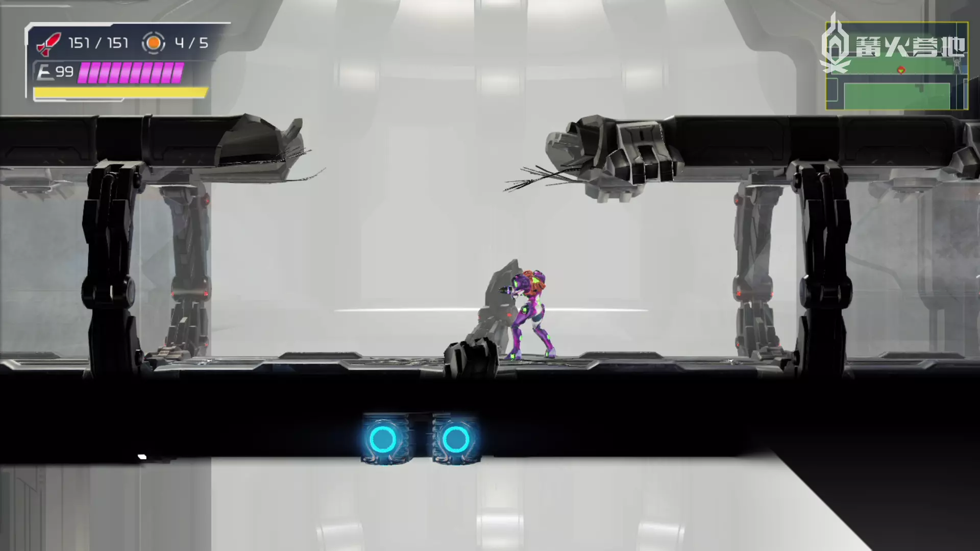 炸破这里的走廊即可进入最终决战区域 伊多拉修 到达终点处有黄色发光的柱子的地方使用重磅炸弹炸开,爬上去使用电梯进入最终决战。 ???(防剧透) 第一形态:BOSS的主力战斗方式为近战3连格斗,以及全屏扣血光芒接格斗、跟踪黑洞三种方式,其中黑洞可以用攻击消除,黑洞推荐使用蓄力飞弹锁定3发后点射光束炮几下就能消除。近战格斗由于速度很快,并且会很快地拉近距离,需要尽快连跳飞出去。当BOSS身体发出红光时,就会使用横向全屏光芒,这个时候蹲下躲避,就会触发近战反制。 反制成功后,BOSS会进入无敌状态,此时专心消灭黑洞,然后抓住对方闪现的机会,它会做一个挑衅的动作,挑衅瞬间是近战反制的时机,一次机会会有两次近战反制操作,反制成功后在特写动画内连续输出一定伤害会进入第二形态。 第二形态:此时BOSS会使用追踪连续射击、瞄准蓄力光炮射击等,尽量处于一直行动的状态,且外要注意对方的高速近战攻击,横向的冲撞攻击高跳一般来不及躲,必须连续输入蹲下变成球躲避。 第三形态:首先BOSS会主力使用瞄准蓄力炮,尽量来回跳跃移动,将炮口引诱到空中,就可以在地面安全躲避。此后BOSS会开始使用第一形态的攻击方法,注意前面如果消耗过大,一定要尽量消灭黑洞以获得补给,注意可以使用存留的重磅炸弹一次消灭黑洞。 最后反制两次近战攻击,再使用光炮射击即可取得胜利。最后惯例3分钟逃亡到终点处,即可顺利完成全部的主线游戏(注意如果遇到左边卡住的门会无法前进,需要向下开出新路)。
