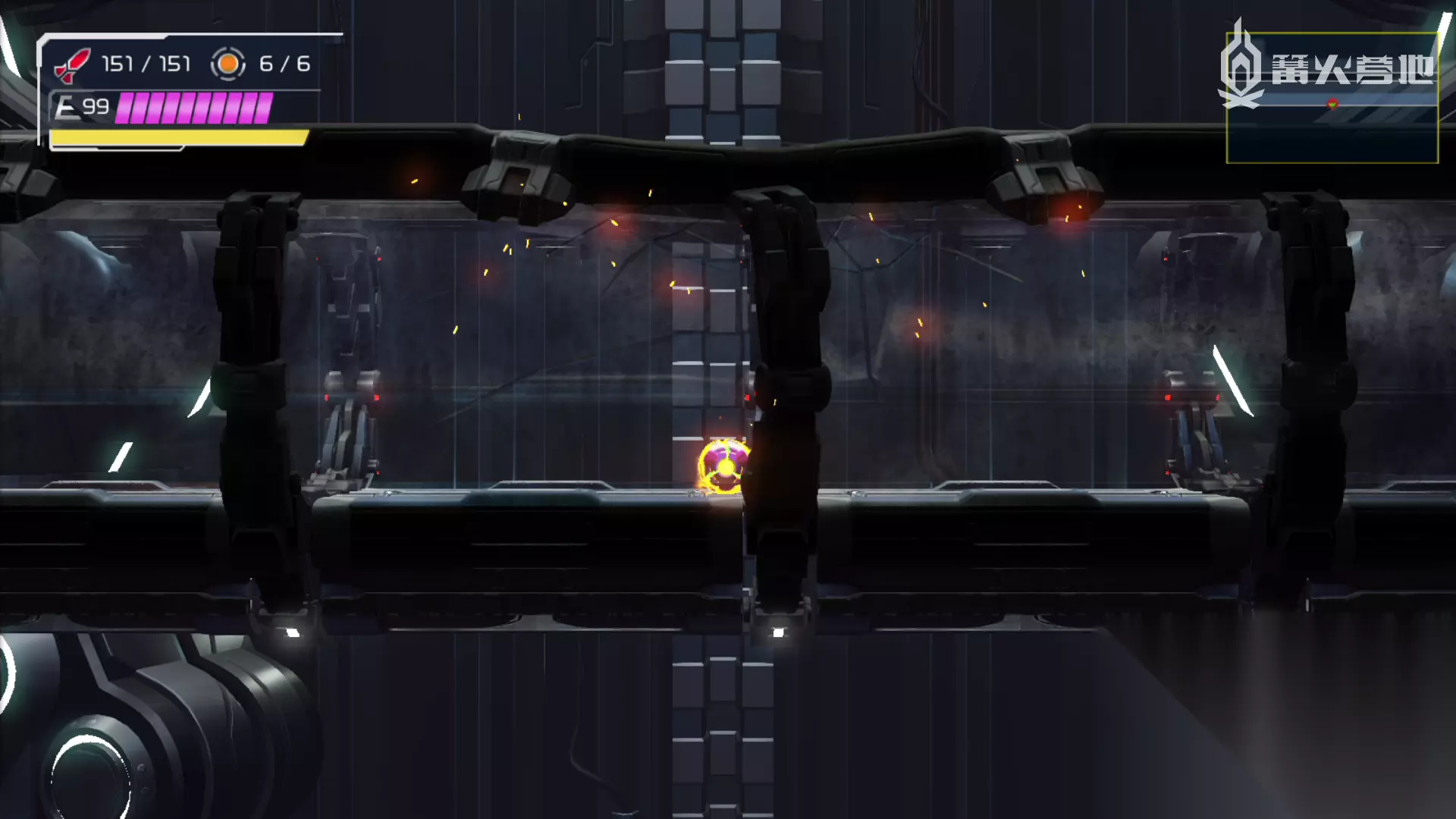 使用十字炸弹可以快速穿过下落的砖块 向右移动乘坐穿梭器前往哈奴比亚。 哈奴比亚 目前上路无法前进,只能通过下路的传送点移动到菲雷尼亚。 菲雷尼亚 右边暂时无法通过,先走左边的寒冷地带。一路前进破坏各种机关后,进入EMMI区域,该区域大区域的上面部分的两个挡板是可以破坏的。
