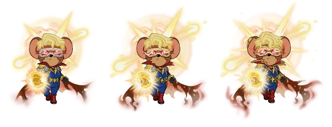 主动技能“闪亮营救”使用后,如超新星爆炸时贯穿照亮宇宙的射线,超鼠迸发出超越光芒的速度赶赴力挽狂澜,正如他每一次英勇无畏地出现在紧急关头,用自己的力量宣布正义的到来。
