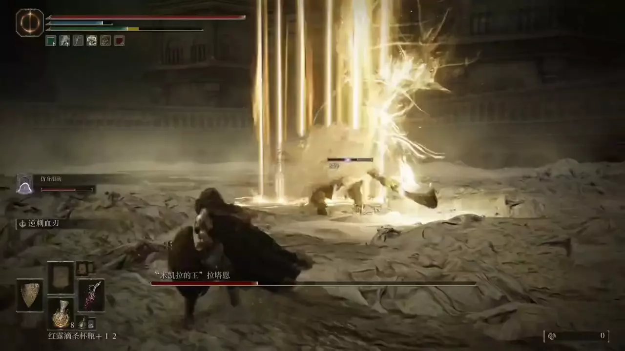 这是艾尔登法环难度8+2周目的ARPG玩法展示,玩家使用跳劈三巨头双特大武器,挑战幽影地的强敌,展示跳劈流派应对幽影地高难度敌人的战斗玩法。