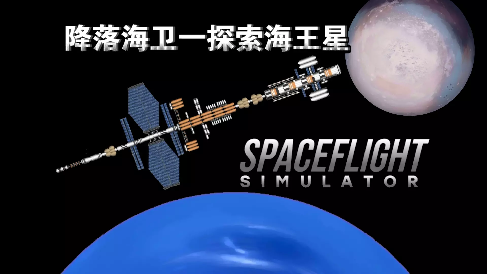 这是《航天模拟器》的游戏实况内容,为海王星空间站系列第7期,展示了在游戏里搭建、操控航天器,推进建立海卫一特里同基地的过程,呈现了航天器飞行、燃料管理等游戏操作画面。
