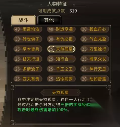 大侠立志传开局天赋哪个好 一、金色天赋推荐 1、天煞孤星:没有队友时,通过战斗击杀敌方的实战经验为3倍,最终伤害提升100%。这个天赋在单挑战斗中非常强大,适合喜欢独自战斗的玩家。 2、武林霸主:初始声望为10,等级为100,仁德-100,在游戏后期非常有用,尤其是在高周目中,100级的开局可以让你快速提升实力。