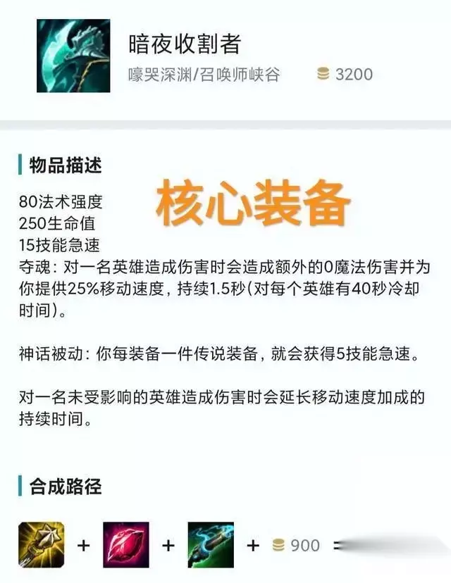 英雄联盟ap老鼠冰封流出装: 在装备的选择上,推荐暗夜收割者这件神话装备,首先老鼠的e技能CD时间比较长,AP老鼠最需要的就是技能冷却,而它的神话被动是每一件传说装备会增加5技能极速。 同时在命中敌方英雄之后,还会给老鼠一个瞬间加速,这对于AP老鼠来说是最关键的,AP老鼠没有回复能力,在团战中的生存空间会比较差,只有灵活的走位,才可以极大的提升他的输出。 之后大家可以选择鬼书,大天使等等。在团战中,几乎只需要隐身开大平a,等待着被动和E技能的自动灼烧就好了。
