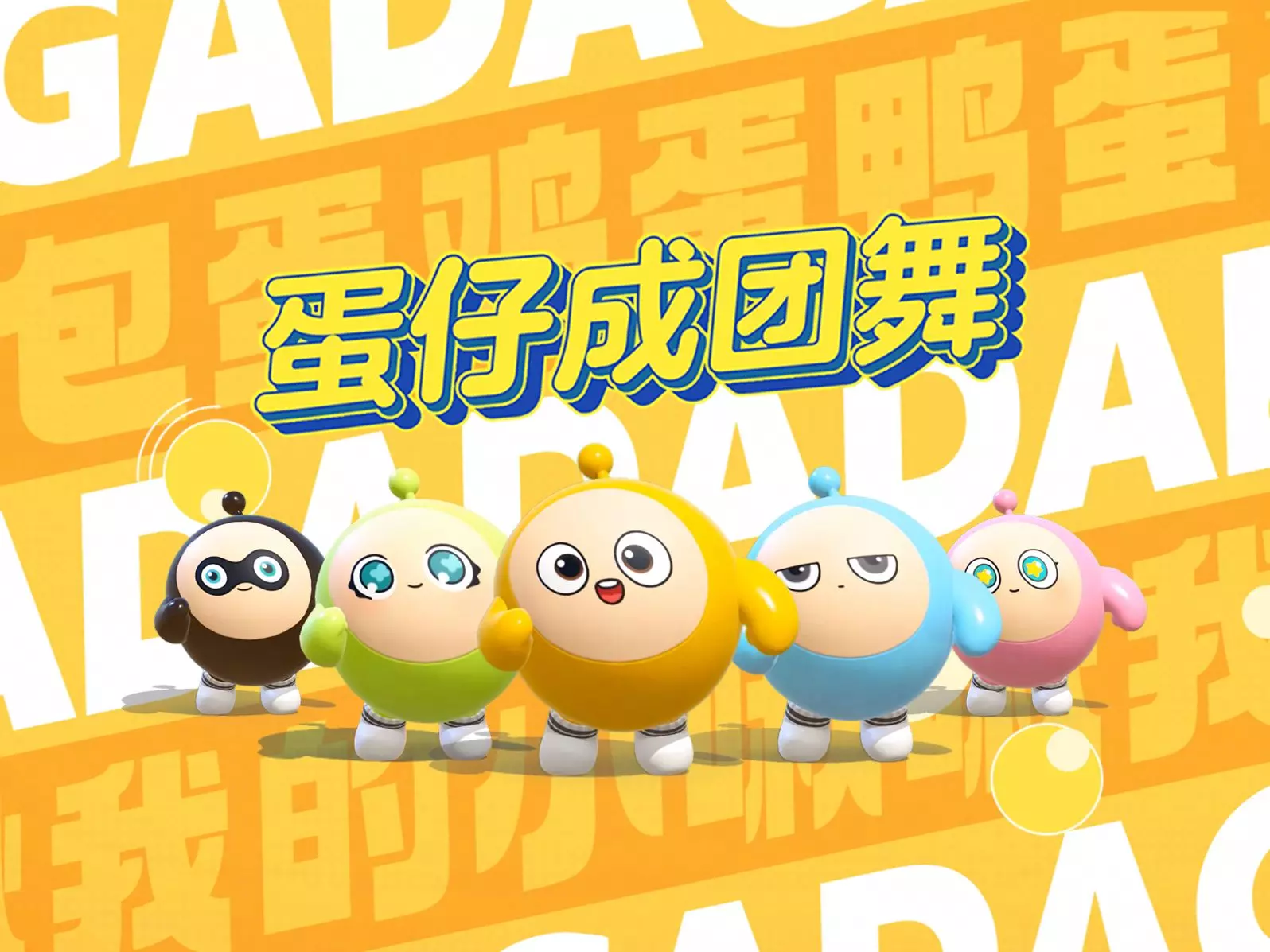 🕺舞台王者蛋小黄🖤快乐源泉蛋小黑💕天使歌喉蛋小粉💙实力ACE蛋小蓝🍀甜美笑颜蛋小绿🎉五小只出道快乐🎆蛋娱新晋顶流闪亮登场💯