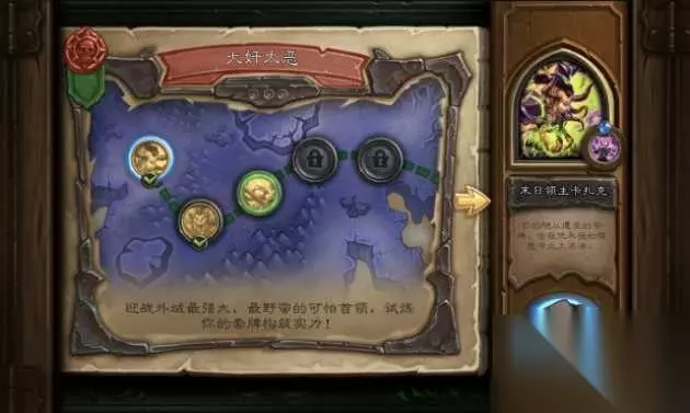 第1关 末日领主卡扎克 主要注意点:打到疲劳,对面会在你场上的怪铺满的情况下,使用末日降临,推荐卡组宇宙法。 技能描述:你每有一个随从死亡,就为末日领主回复5点生命值。 主要注意点:打疲劳 推荐卡组:宇宙法 卡组代码:# AAECAf0EHk2KAbsCyQOrBMsE7QSWBewHjQiDlgOfmwOgmwOhoQP8owOSpAO/pAPypQP0qwP1rAP6rAOwrQPwrwPxrwPnsAOBsQOFsQOHsQORsQOItgMAAA==#
