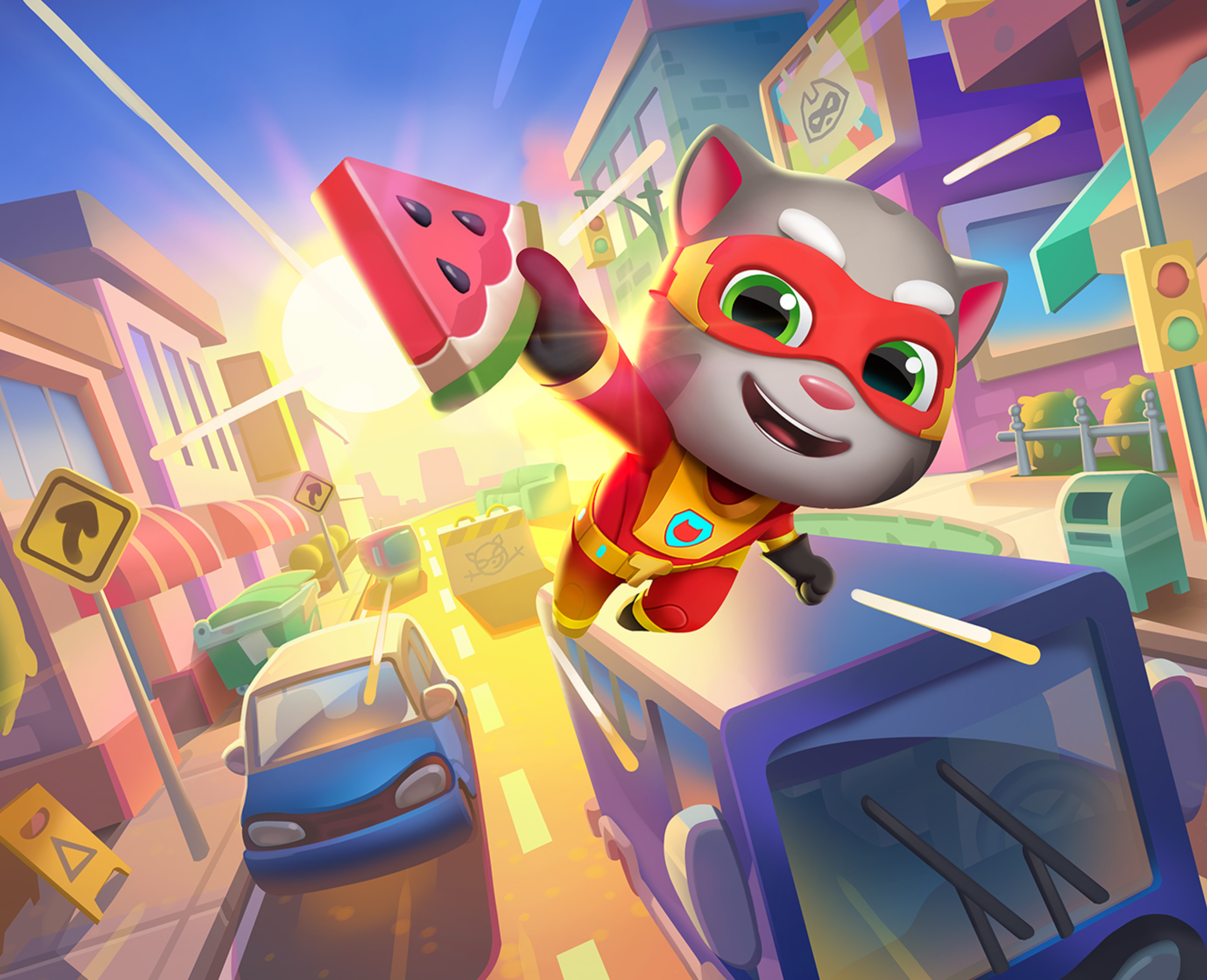 现在就打开《汤姆猫英雄跑酷》,换上新战衣、拿起新道具,和汤姆猫一起在城市秋日的映照下尽情奔跑,书写属于你的英雄故事吧!