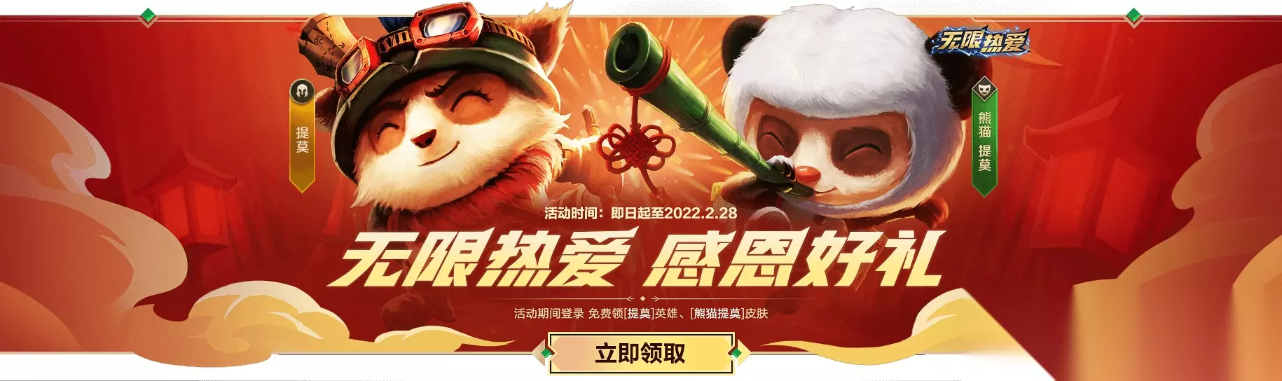 本文介绍了英雄联盟手游中熊猫提莫的获取方式,在2021年10月8日-2022年2月28日的活动期间,玩家登录游戏就能免费领取提莫英雄及“无限热爱”版熊猫提莫限定皮肤。