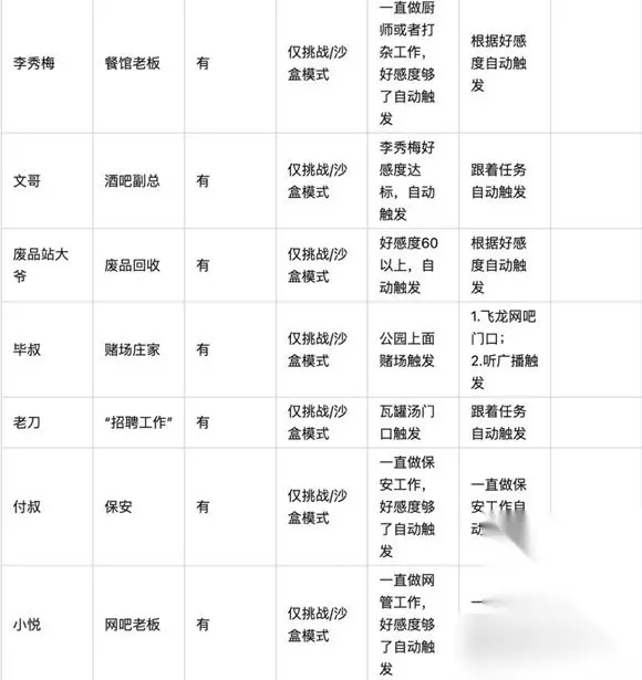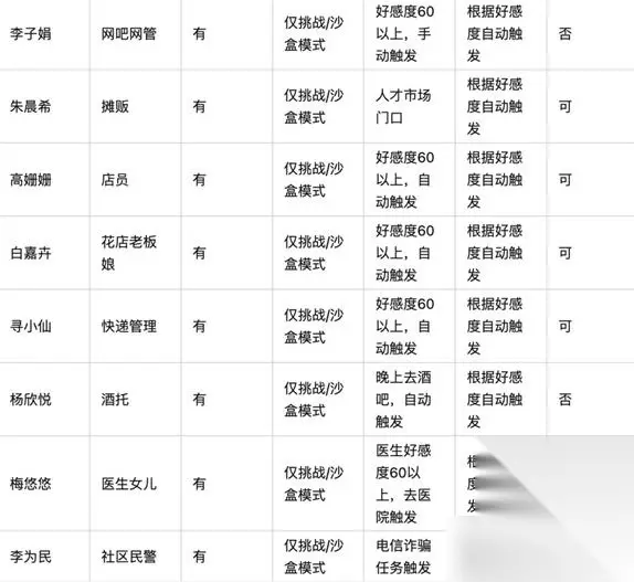 《大多数》全人物剧情触发条件一览 剧情模式人物: