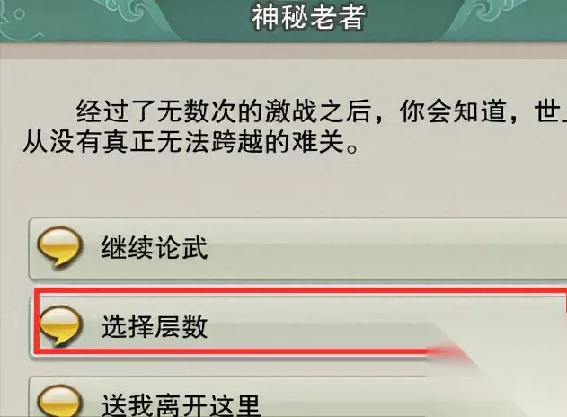 进入之后对话神秘老者可以选择层数 在选择层数中发现了两个选项