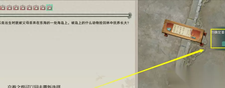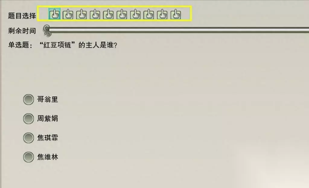 完成十道题目作答之后可以交卷 也可以选择上一题或者任意一题重新做