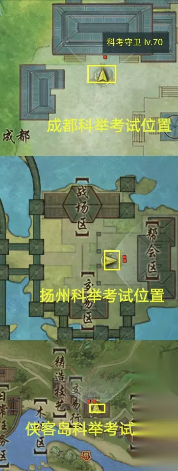 成都、扬州、侠客岛参与科举考试的位置