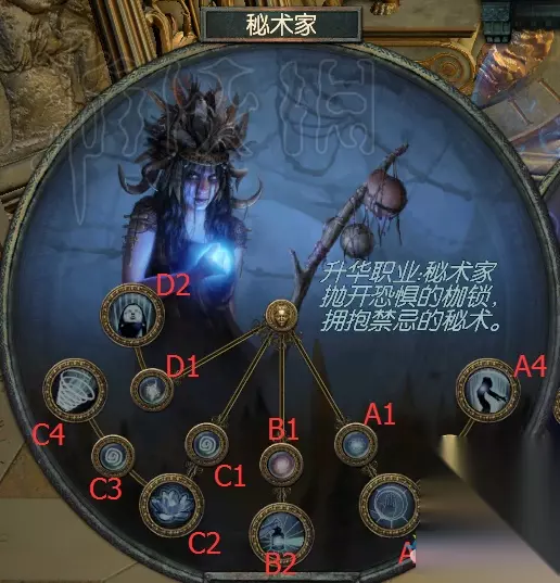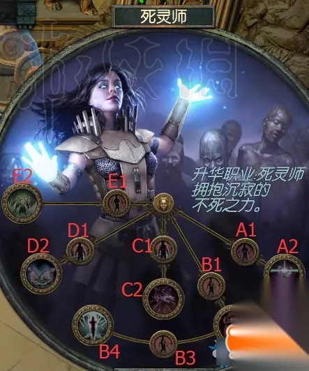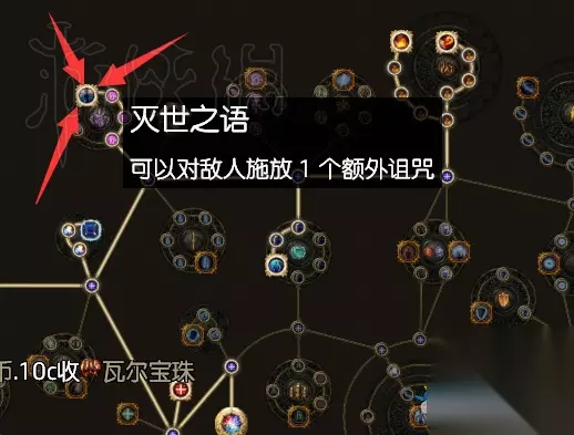 A1【能量护盾,能量护盾回复速率】 增加8%护盾 增加15%护盾自动回复速率 A2【恶毒牢房】 增加100护盾 若过去4秒内护盾开始了回复,则护盾的回复不会被打断 A3【能量护盾,能量护盾回复速率】 增加8%护盾 增加15%护盾自动回复速率 A4【残劣堡垒】 过去4秒内每个你击败的敌人每秒回复你0.5%护盾 护盾全满时免疫眩晕 B1【能量护盾,混沌伤害】 增加10%的混沌伤害 增加8%护盾 B2【虚无之塔】 周围敌人减少20%混沌抗性 周围敌人减少25生命回复 C1【能量护盾,诅咒持续时间】 增加8%的护盾 增加15%诅咒的持续时间 C2【秽言亡语】 你击败的受诅咒的敌人有20%几率爆炸,造成等同四分之一其生命的混沌伤害 受到你诅咒的敌人增加10%承受的伤害 C3【能量护盾,诅咒持续时间】 增加8%的护盾 增加15%诅咒的持续时间 C4【恶语术】 可以对敌人施放1个额外诅咒 当你击败敌人时,敌人身上每个诅咒赋予你等同4%非混沌伤害的额外混沌伤害,持续4秒 D1【能量护盾,暴击率】 增加8%护盾 增加20%攻击与法术暴击率 D2【禁忌力量】 暴击时10%的机率获得暴击球 加1暴击球数量上限 【死灵师】