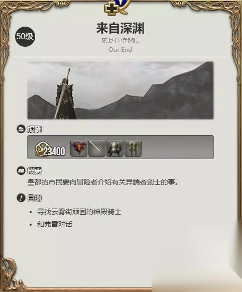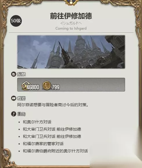 2、然后在伊修加德砥柱层(13.2.8.8)找【皇都的市民】接50级任务【暗黑骑士的传言】。