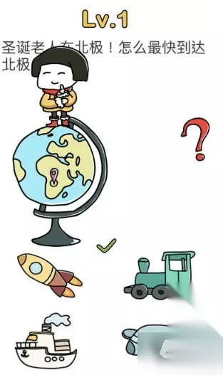 *脑洞大师寻找圣诞老人之旅攻略大全 1、圣诞老人在北极,怎么最快到达北极 正确答案: 将人移动到地球仪的北极位置就行了。(如下图)
