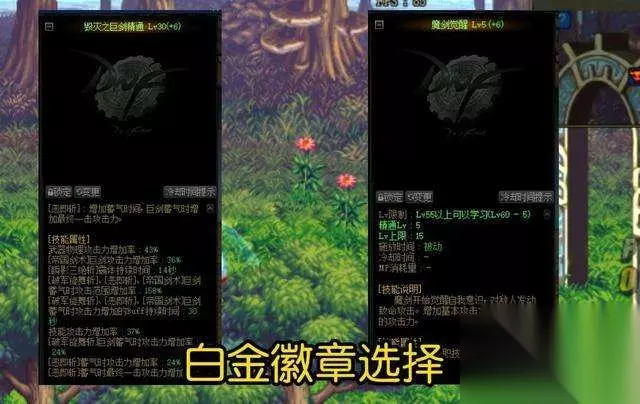 剑宗白金徽章选择「毁灭之巨剑精通」和「魔剑觉醒」这两个技能为主,可以增加物理攻击力和技能攻击力。 「毁灭之巨剑精通」可以增加面板攻击力,并且还能提升部分技能攻击力,是不错的选择。 「魔剑觉醒」可以增加技能攻击力,简单粗暴。 这两者区别不大,获得一个就达到毕业水平。其他白金徽章就不建议选择了,仅是过渡作用。 如果小伙伴们还没有加点技能正确,可以采用以上加点方案。当然小伙伴们也可以提出自己观点,大家一起完善剑宗职业的玩法哟~