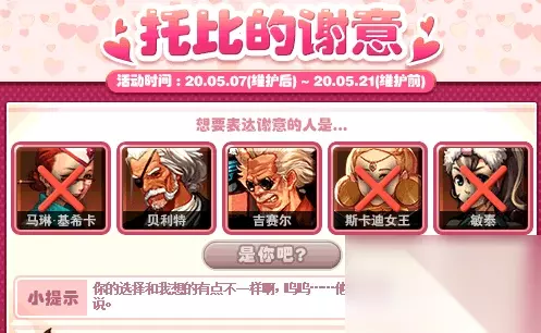 DNF5月9日托比的谢意NPC答案是什么?托比的谢意是游戏中新上线的一个大题奖励活动,有很多丰厚的游戏奖励哦!接下来小编为大家带来5月9日托比的谢意NPC答案分享介绍,小伙伴们感兴趣的一起来看看吧!谢谢。
