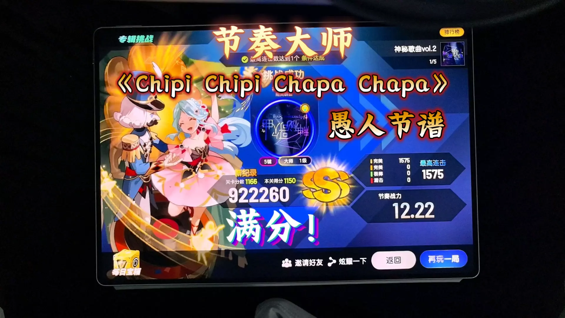 游戏:Phigros Phigros x 节奏大师的二次联动,包含了三首曲子以及一首AT,超出预期的一次更新,配置又玩出了一种新意,另外HD谱面依旧稳定发挥,一…