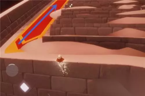 2.飞上二级台阶后,往下图所示的方向走。
