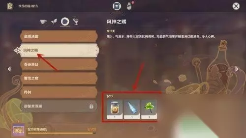 3.第三步:最后即可查看风神之赐的配方为:一份果汁、一份气泡水和一份薄荷