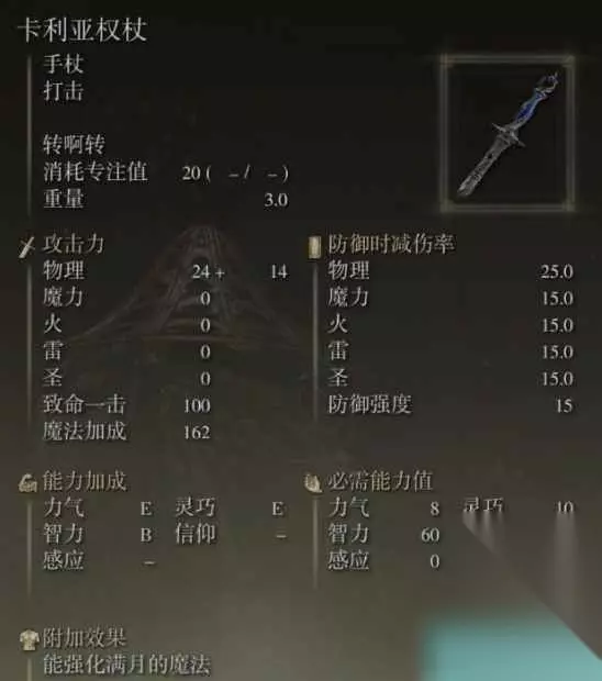 IcB 2、能兑换一个卡利亚权杖,可以算是游戏中最好的法杖之一了,数值面板也都很不错,是可以用到毕业的法杖。IcB