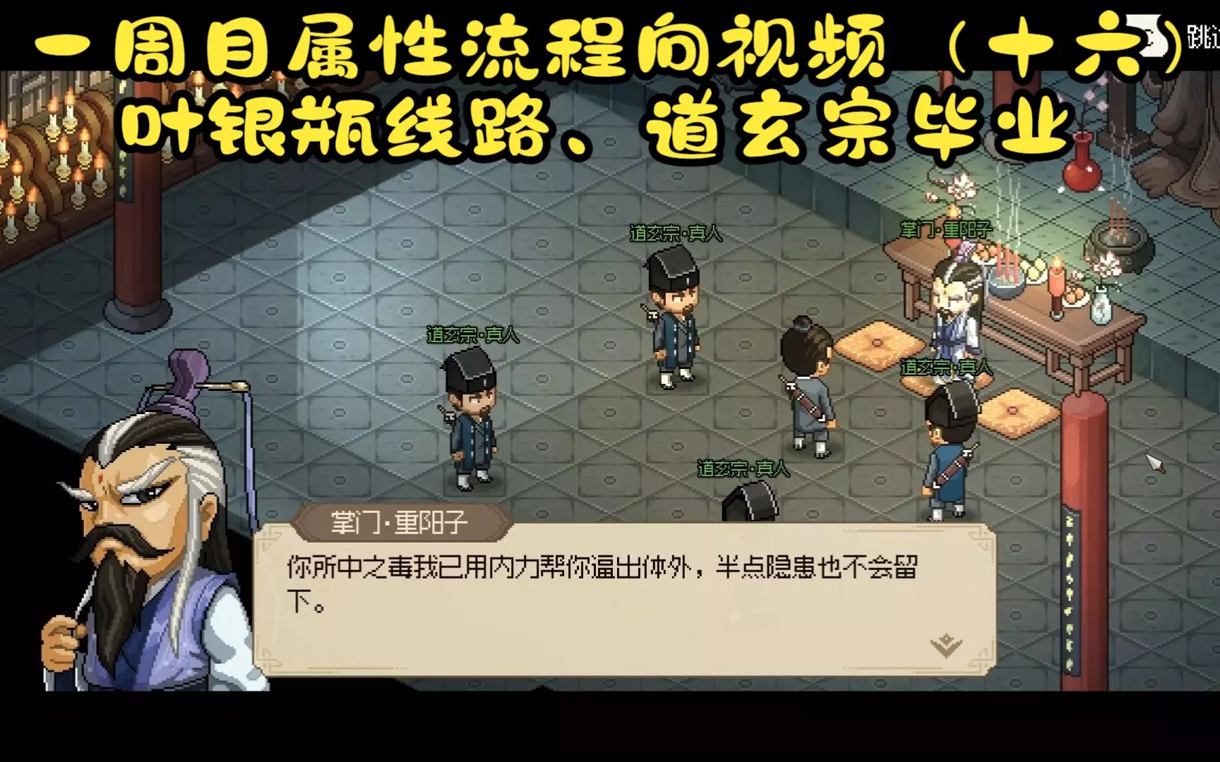 来道玄宗的时候顺便可以把叶银瓶和叶云的剧情做完,道玄宗毕业很快,按照自己的节奏做任务选择什么时候毕业就行。下期先把偷来的经书带着队友都读完再加入释法寺。