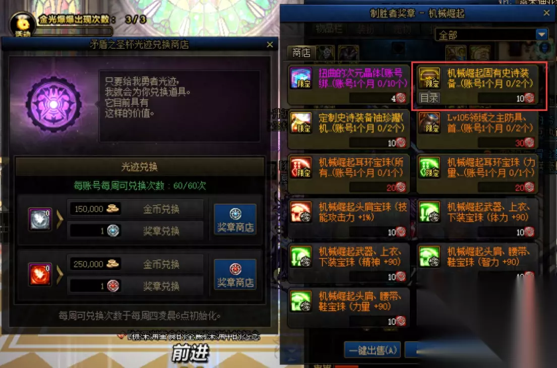 分裂的四方龙息、爆龙王的印章材料宝贵,但是参与军团以及巴卡妮之后的勇者光迹不要急着兑换成金币,可以在光迹商店当中对换史诗自选礼盒。伊斯大陆和机械崛起两个部分每月分别可以兑换两个史诗自选礼盒。