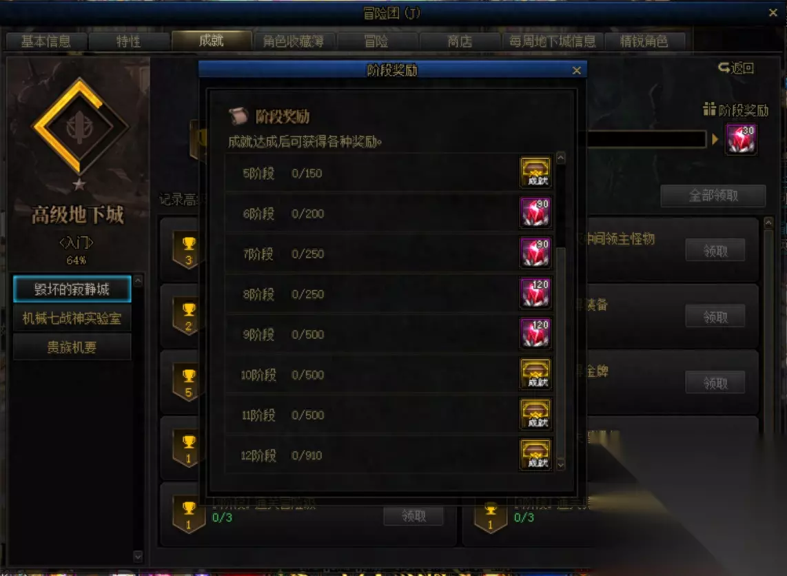 4.成就系统 成就系统当中地下城模块当中积攒成就点数除了可以获得各种材料之外,还可以获得装备自选礼盒,但是需要长时间的积累,无法短时间获得。