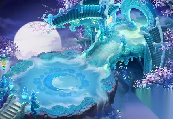 普陀山 月宫: 霜华伴月,但见阴晴圆缺。月宫弟子受月灵引导,善于利用时之月的变化而发动攻势。在圆月下踏月刃起舞显露杀机,在月暗时借寒魄冰轮控制对手,更能在月光的笼罩中发挥出极大的攻击力,予敌人以重创。相逢桂丛下,决战月明中,不负广寒深醉。