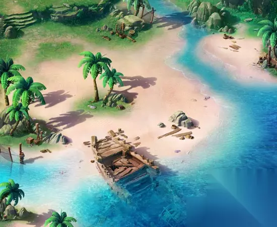 大雪山 东海湾: 地处东海西北部,椰清沙幼,鸟语花香。建邺城的老人说,很多年前一次罕见的大风浪过后,城北的东海岸附近就多了一艘沉船。海岸东面有一个神秘的大漩涡,波涛诡谲,无人敢近。