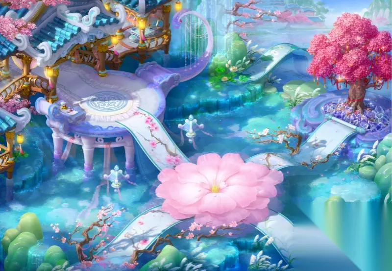 海底迷宫 瑶池: 王母宴会宾客之地,曲水流觞,云蒸霞蔚,处处瑶花仙树。这里的蟠桃九千年一熟,人吃了可与天地日月同寿。桃花开时轰动三界,据说将这里的桃花送给心上人即可两情相悦。