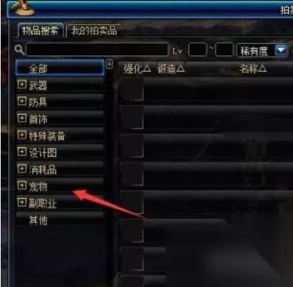4.然后我们在拍卖行里面点击左侧的【宠物】选项