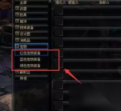 5.然后我们在里面选择红色宠物装备、蓝色宠物装备、绿色宠物装备的一个进行搜索