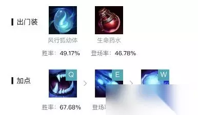 2,出门装备我们带蓝色打野蛋和红药水。技能主Q副E,有大点大,最后点满W。