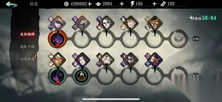 装备词缀以普攻伤害、地面暴击率、暴击伤害为核心,辅以攻击力、精英伤等属性。刻印推荐冰山或灭法司系列,前者提供控制效果,后者增强生存能力。心法选择需以攻击加成为主,万魔、血屠、胖花等红色心法优先放置于主位,魔堡羁绊不可或缺。注意将高练度心法分配至技能链,避免被暗梦羽衣吞噬20%属性加成。