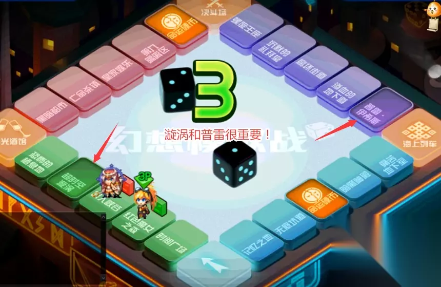 大富翁之路上,超时空漩涡与普雷伊希斯,乃是成败之关键。不少棋手辛辛苦苦积累的金币,正是因为这些关卡的不测,才黯然退场。此时,若漩涡在三点数之外,轻触骰子,便可翻云覆雨。而若在两点数之内,强劲的力度或能带你飞越障碍,直达普雷与海上列车之机遇。