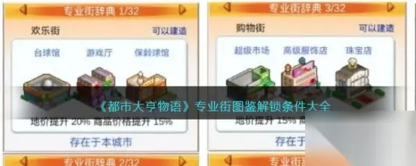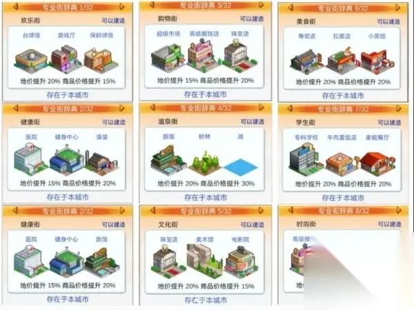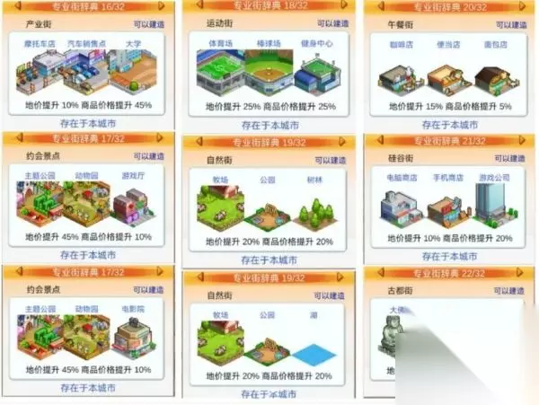 《都市大亨物语》专业街图鉴解锁条件大全 专业街的解锁