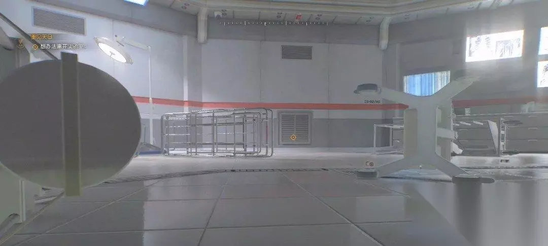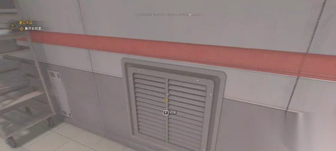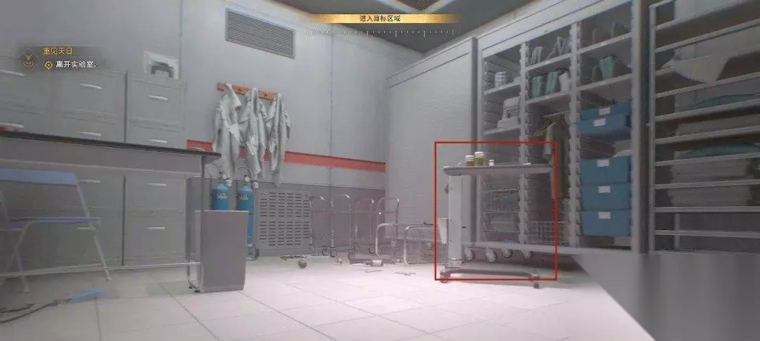 从通风管道出来,我们一直跟着目标点走,爬到这个房间,靠近这个架子可以获得肾上腺素。