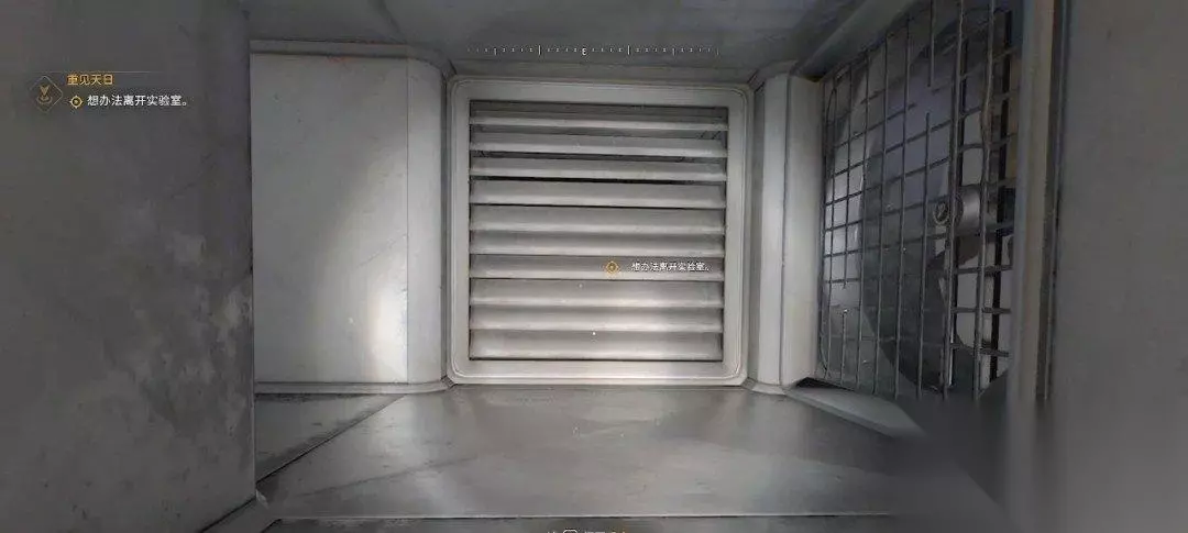 拿到对讲机后,对讲机里的人说自己叫奥莉维娅,她会帮助我们逃出去。我们先爬到前方的通风口。