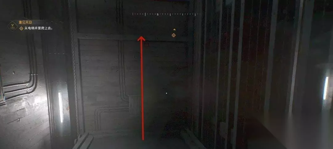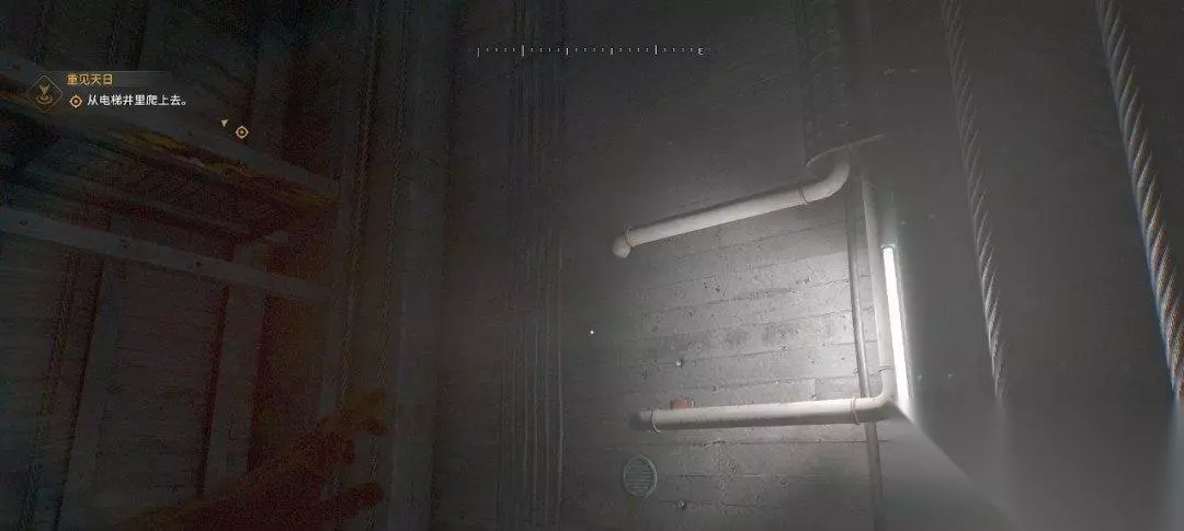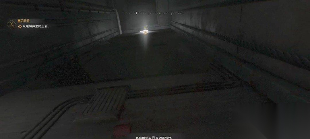 我们来到电梯井,需要往上爬,对着这边的墙往上爬,按空格键可以跳上去抓住边缘(设置里默认自动扒墙)。