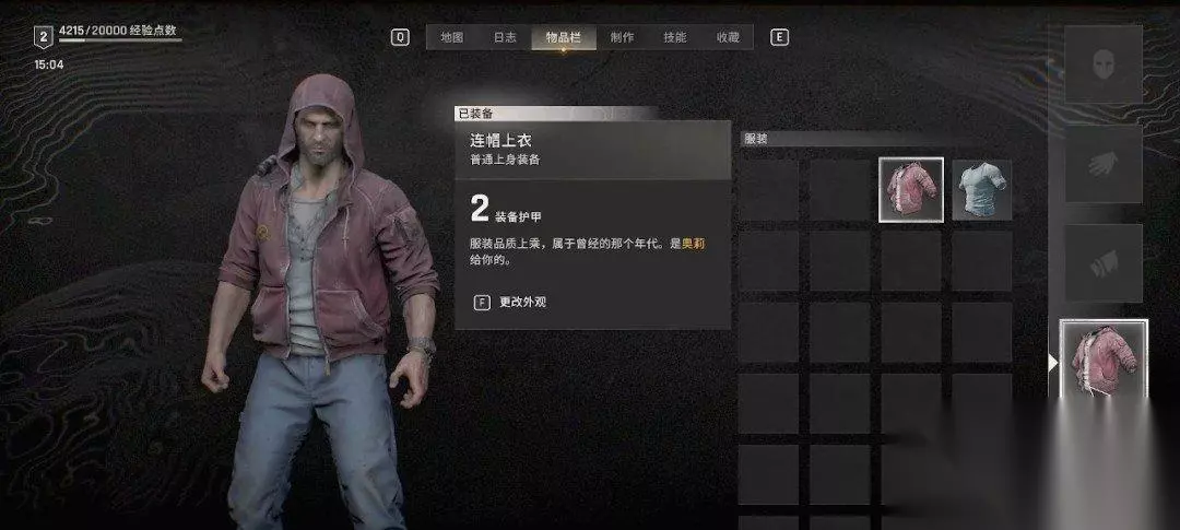 出去之前可以给自己换一身衣服,按I键可以打开菜单栏。