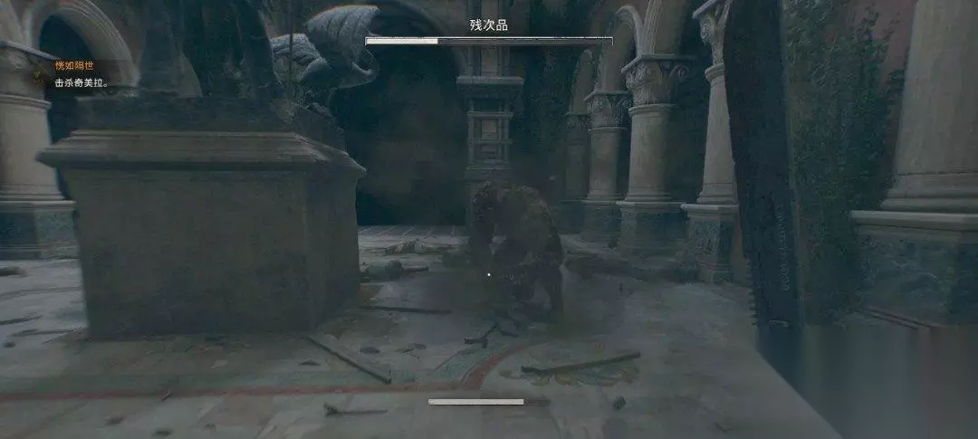 小的丧尸全部解决掉后会从高处跳下来一只奇美拉,这个奇美拉比第一只还笨重,我们也可以借助瓦罐来对付它。