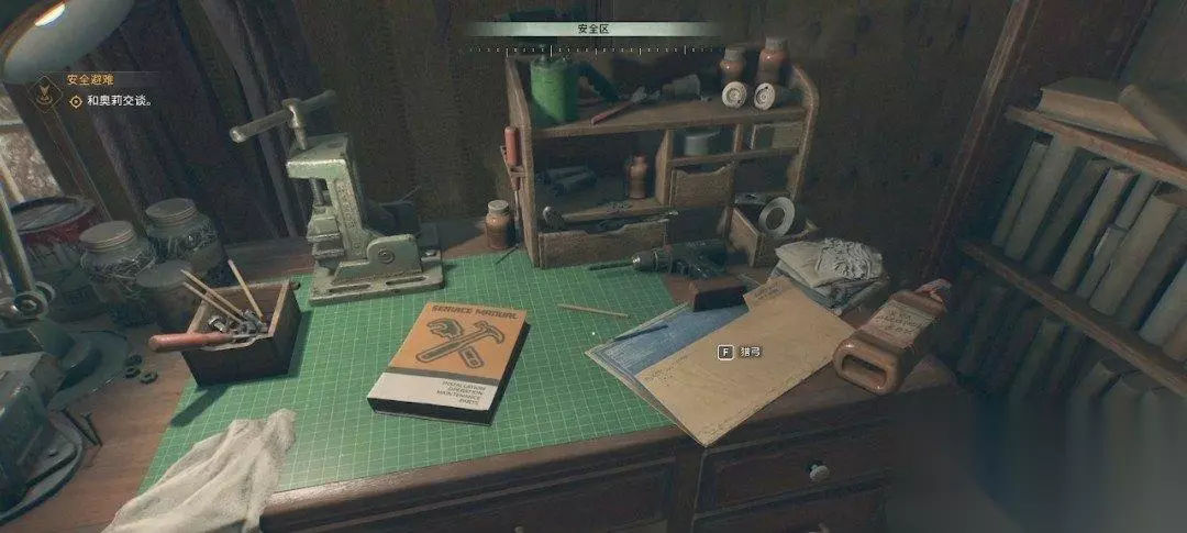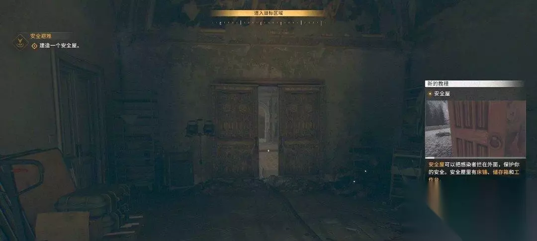 进来后就是安全屋了,虽然这个安全屋还没完全搭建完成。 安全屋:安全屋可以把感染者拦在外面,保护你的安全。安全屋里有床铺、储存箱和工作台。